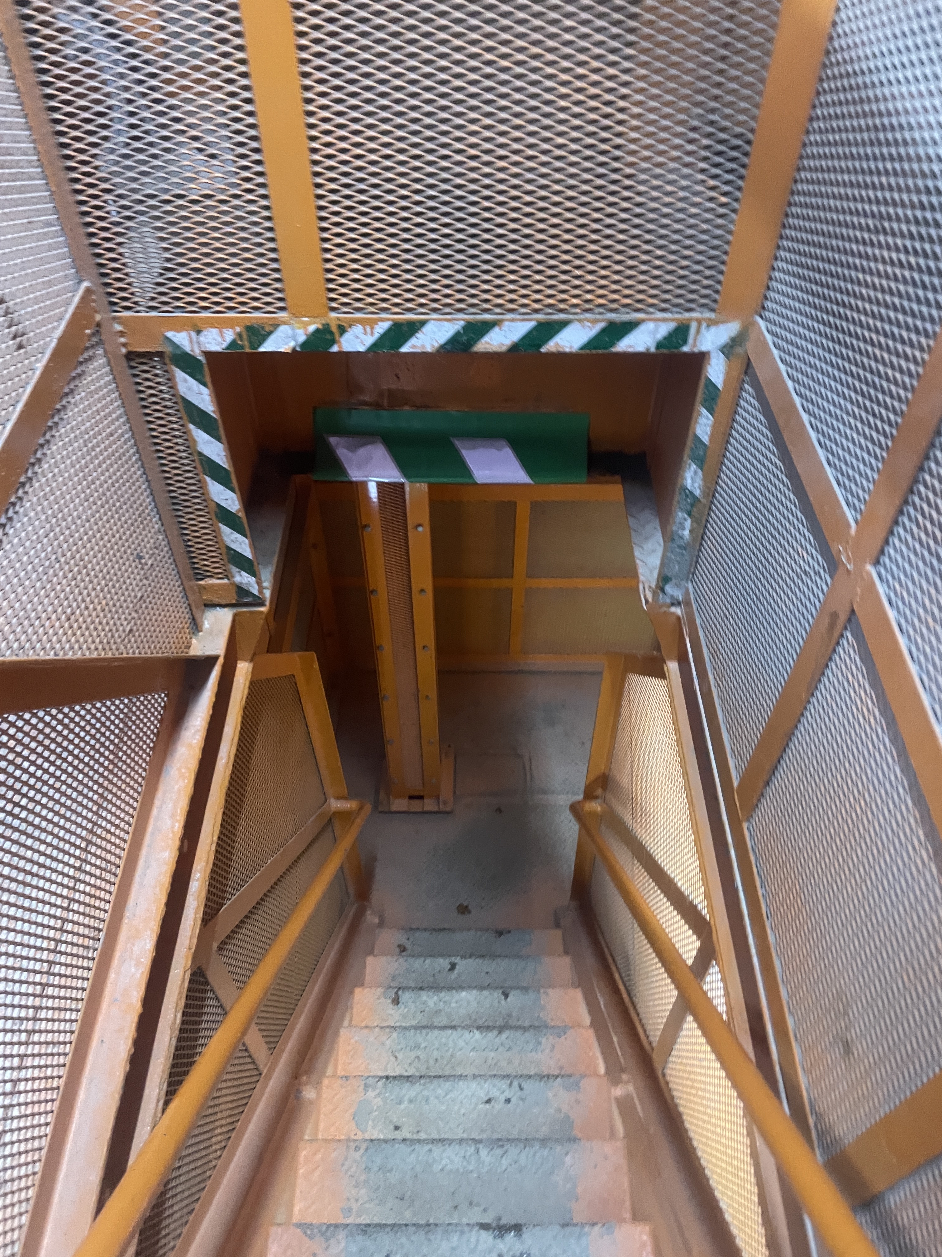 作業員の方も使用している「人キブル」と呼ばれるエレベーターに乗り込みます。