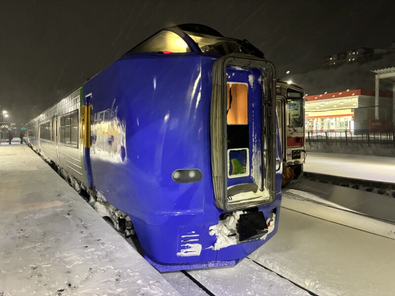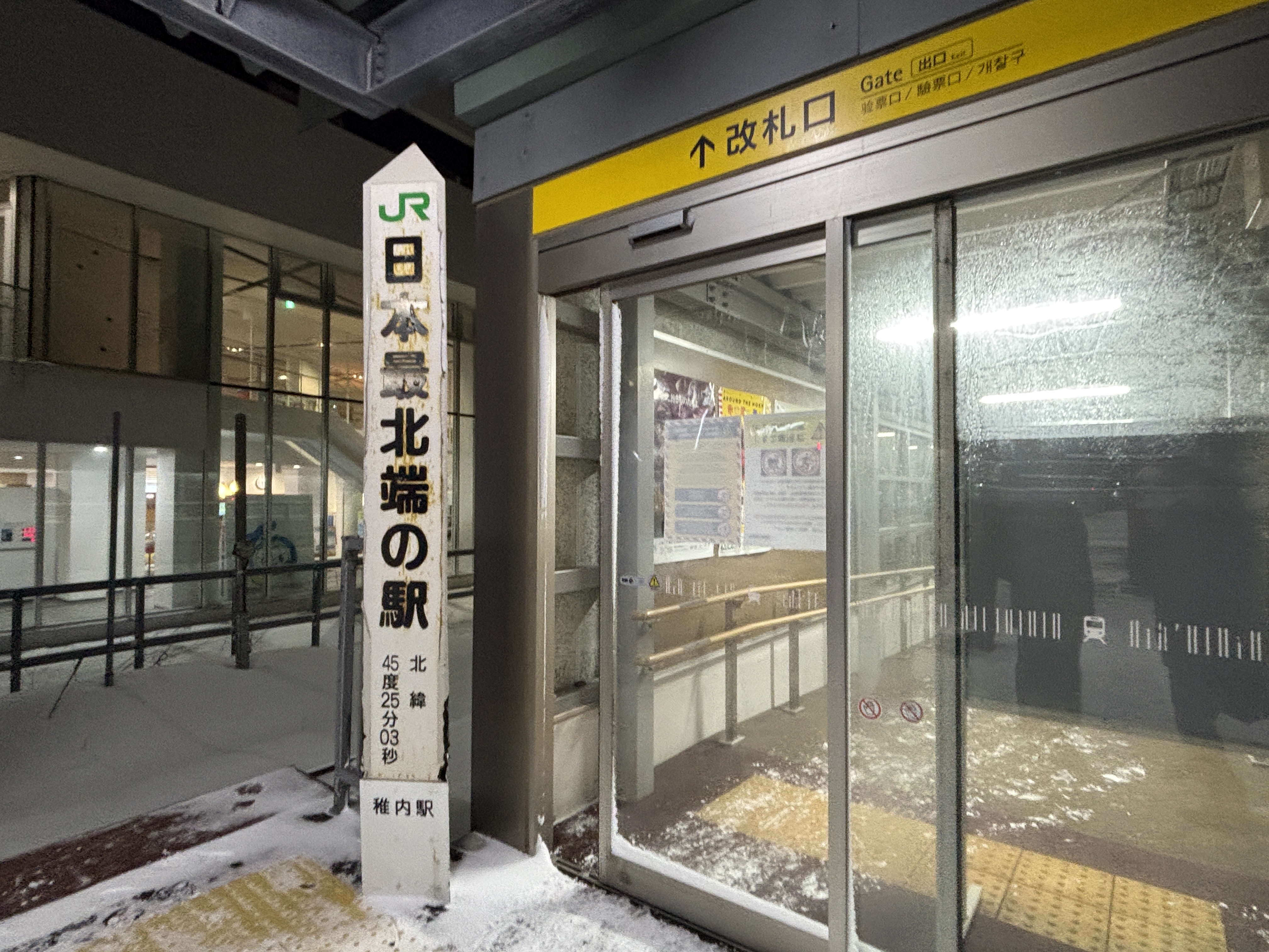 最北端の駅、稚内駅から、本日の夕食へ向かうべく、電車に乗ります。