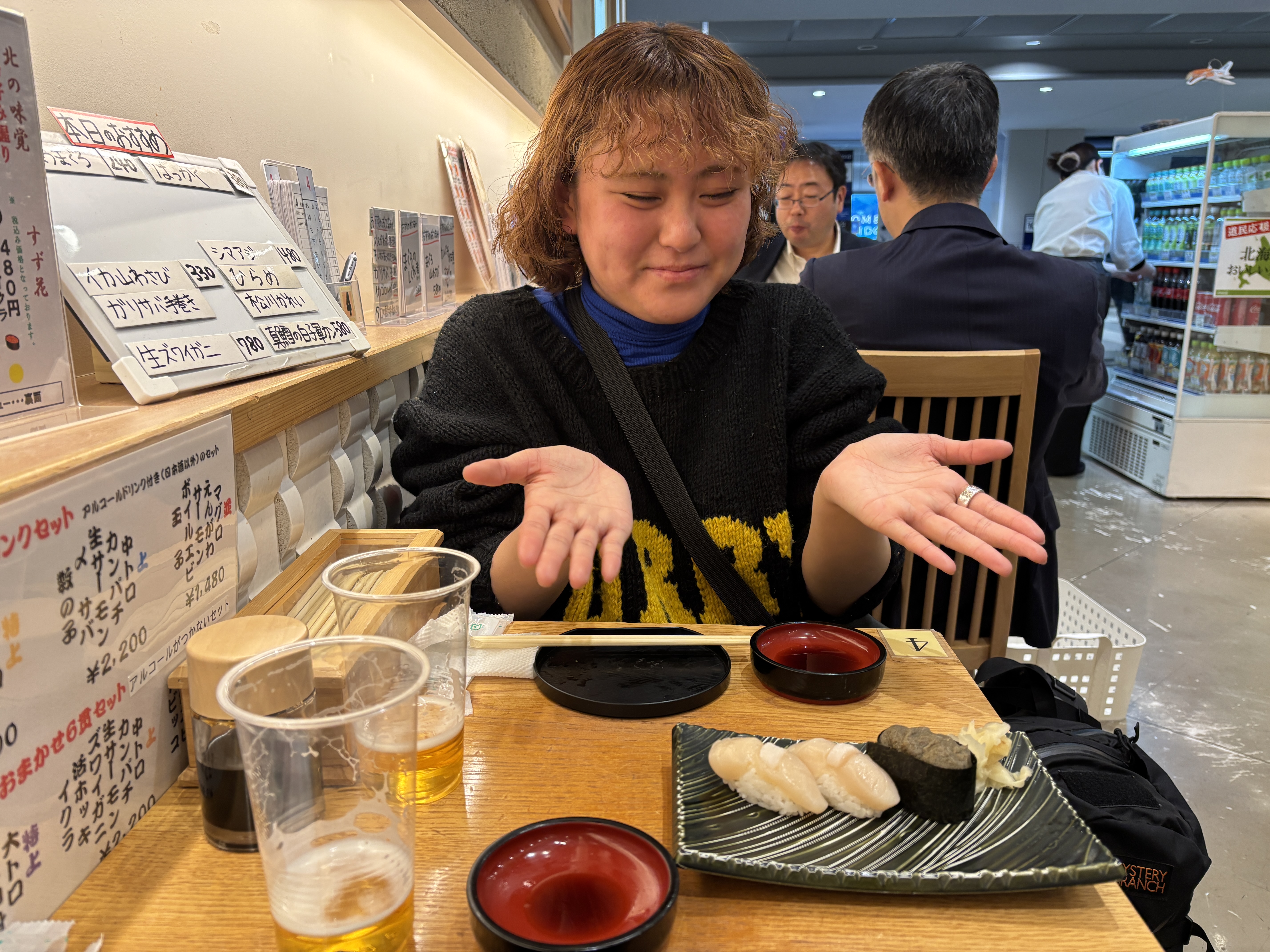 乗り継ぎの新千歳空港でお寿司を食べ、今回の旅は終了です!