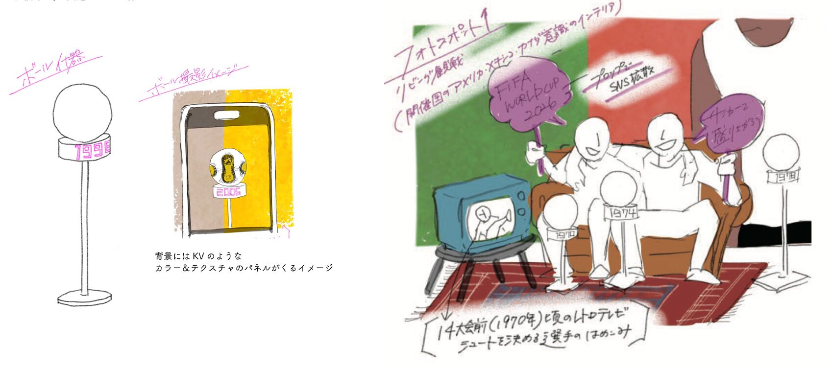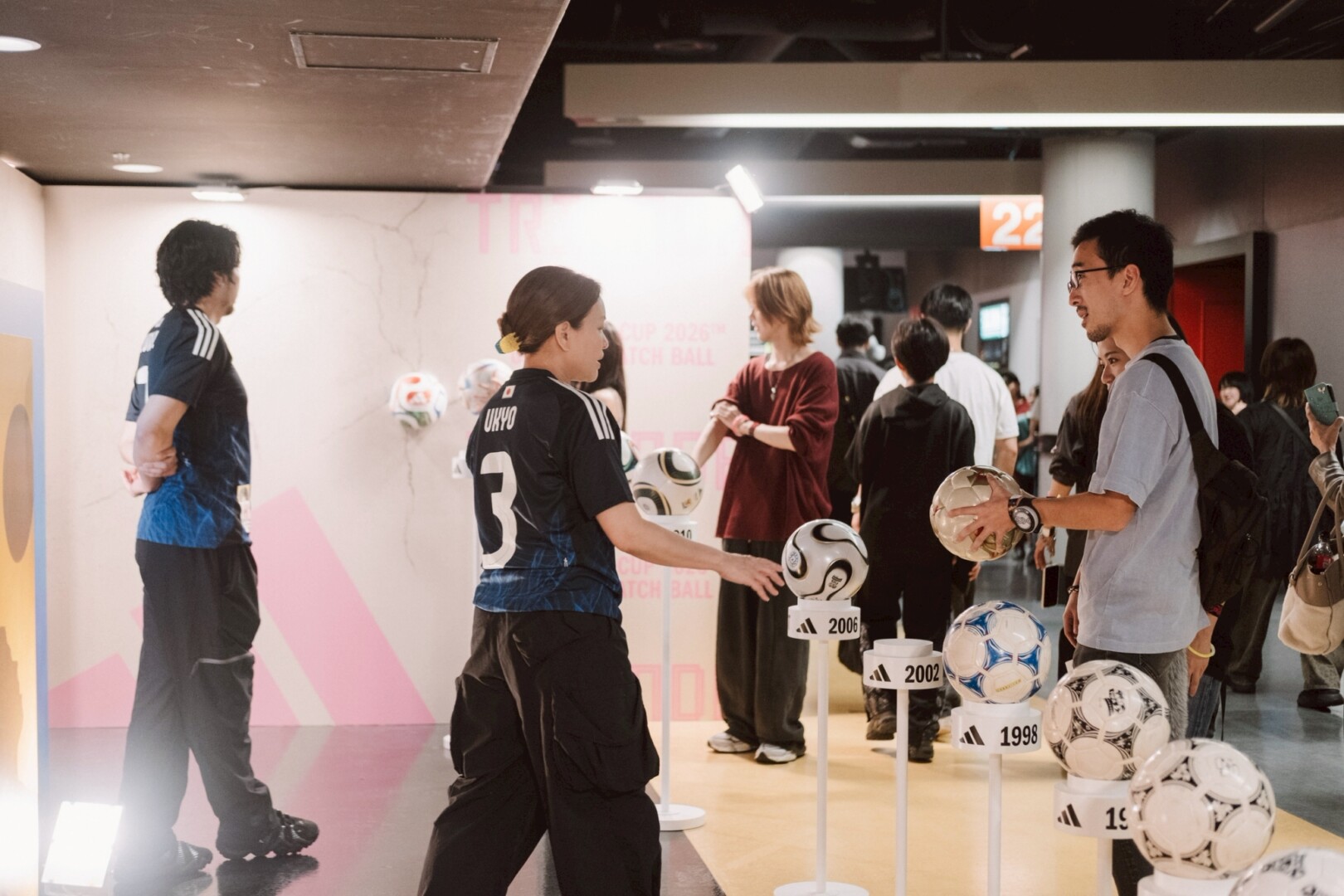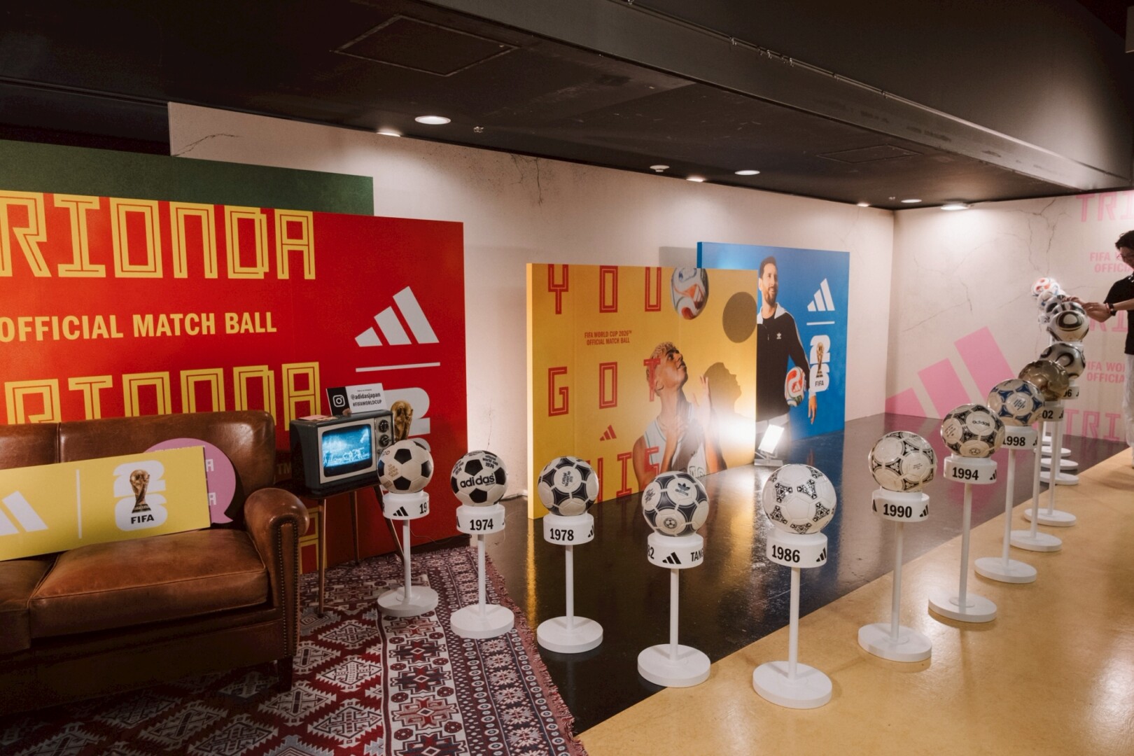 adidasとFIFAワールドカップが共に築いてきた歴史を、公式球の変遷とともに辿りながら、来年の北中米ワールドカップで起こるであろう新しいドラマを想像させる展示です。