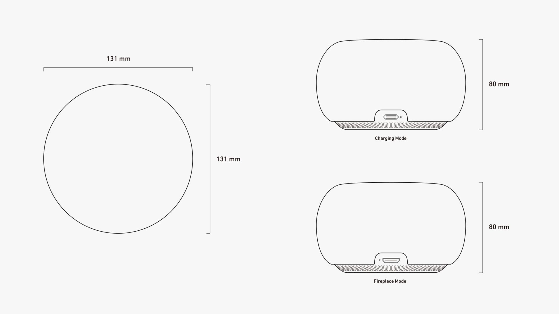 「Coded Fireplace」は電源ボタンも設定も不要で、内蔵バッテリーで静かに駆動します。